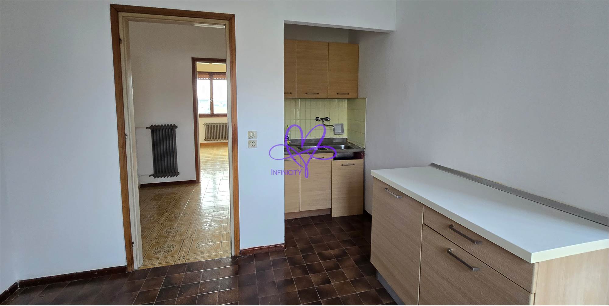 A separate eat-in kitchen, functional and naturally well-lit