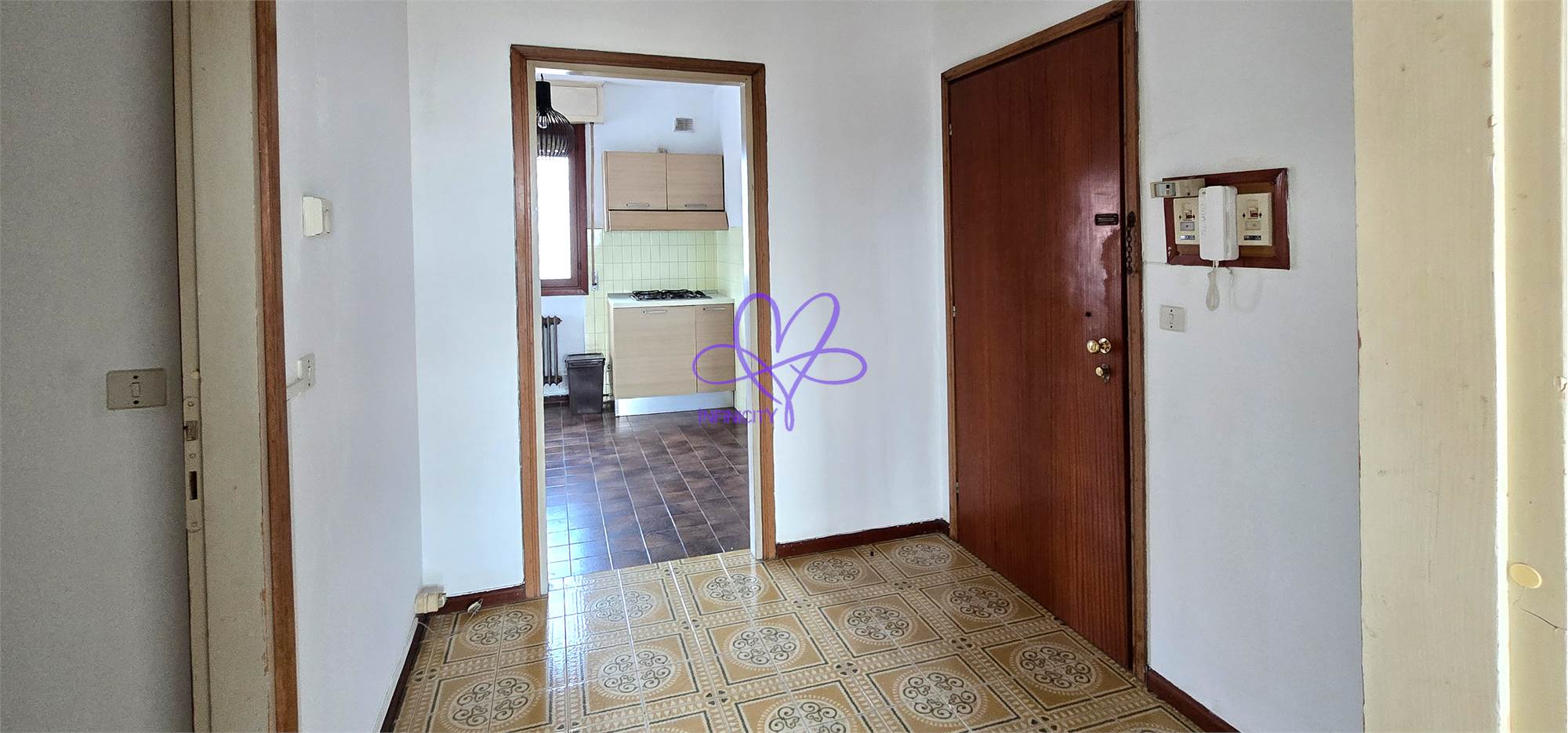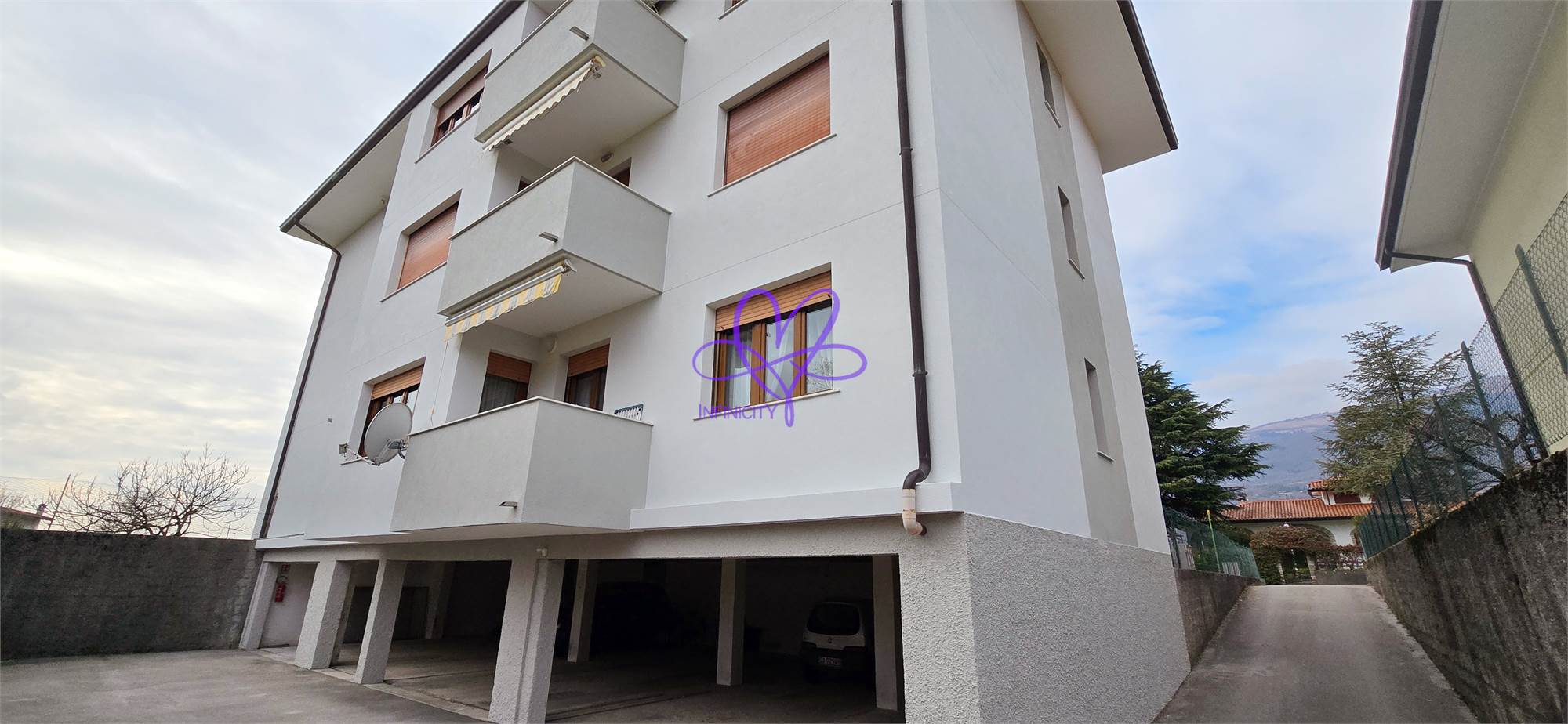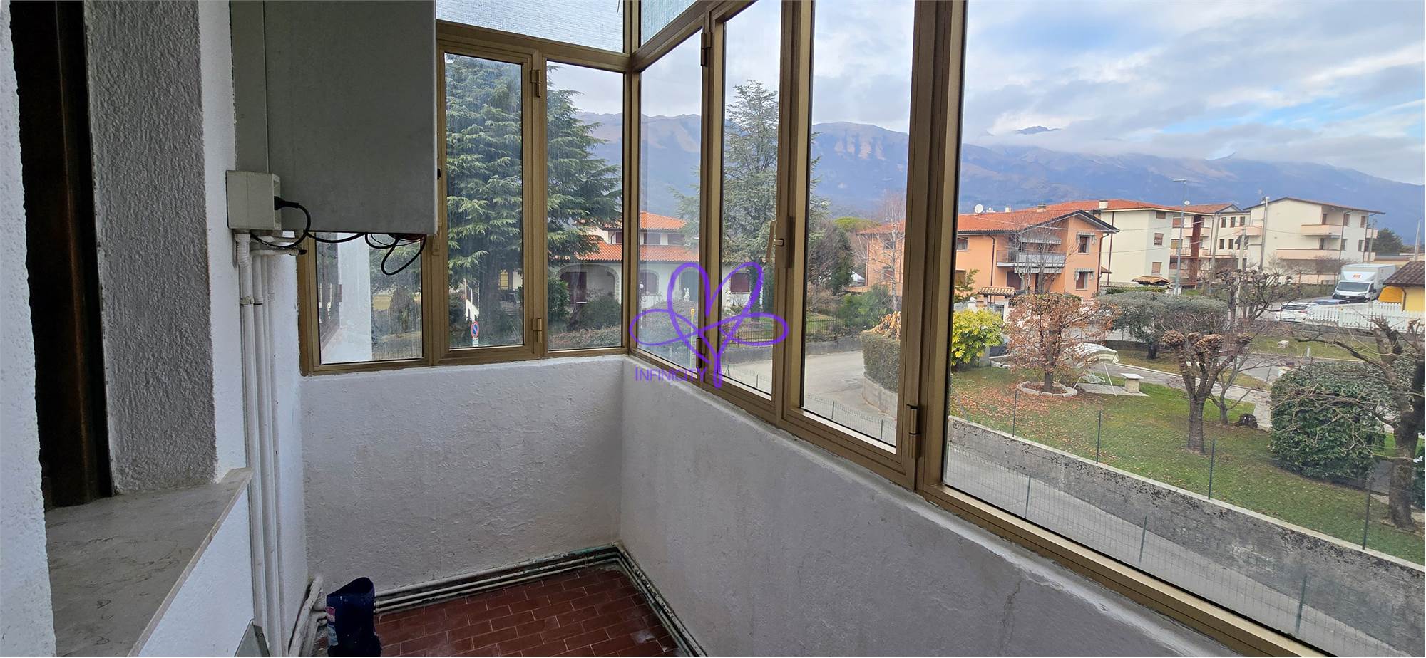 The apartment is located on the first floor of a building that has recently undergone external renovation, in a peaceful residential area just minutes from the town center and the Aviano NATO Base.