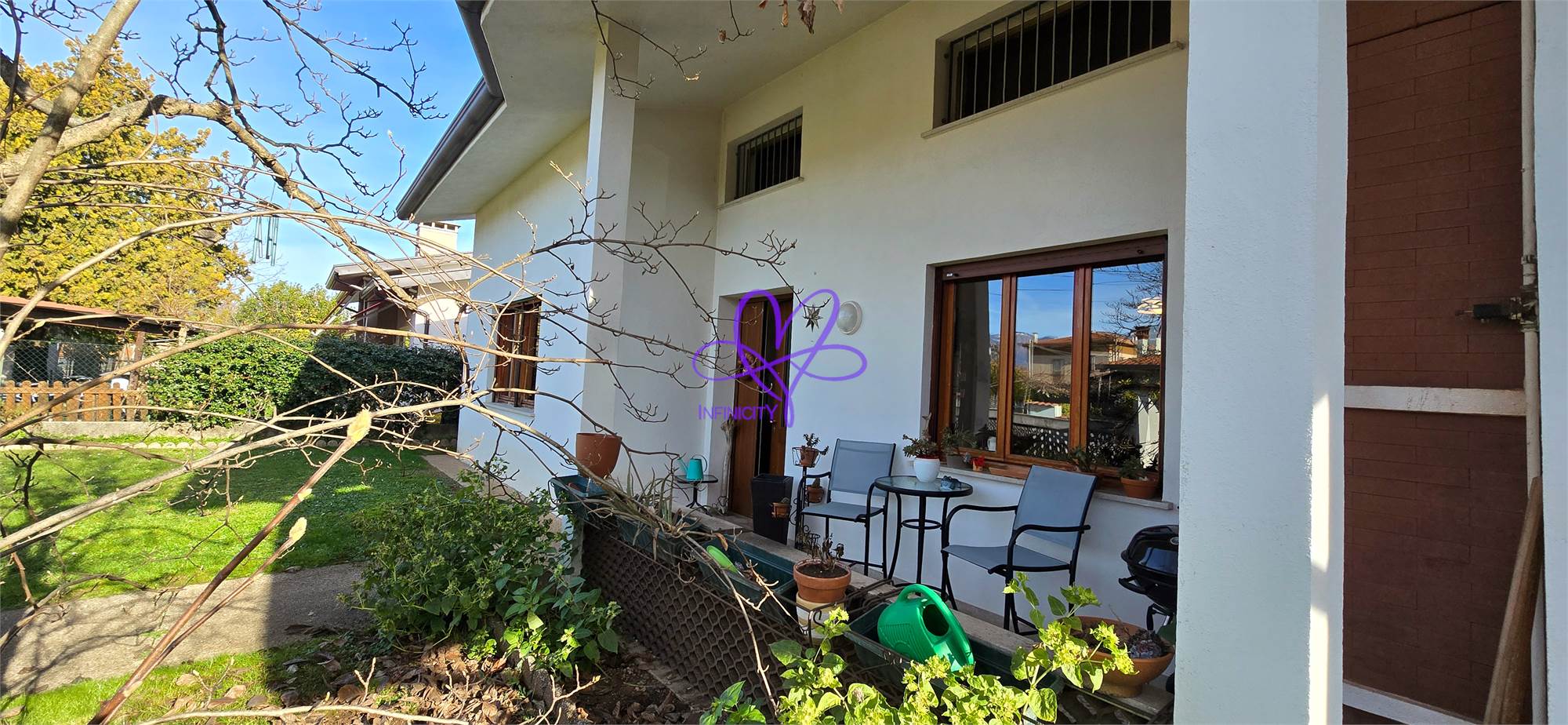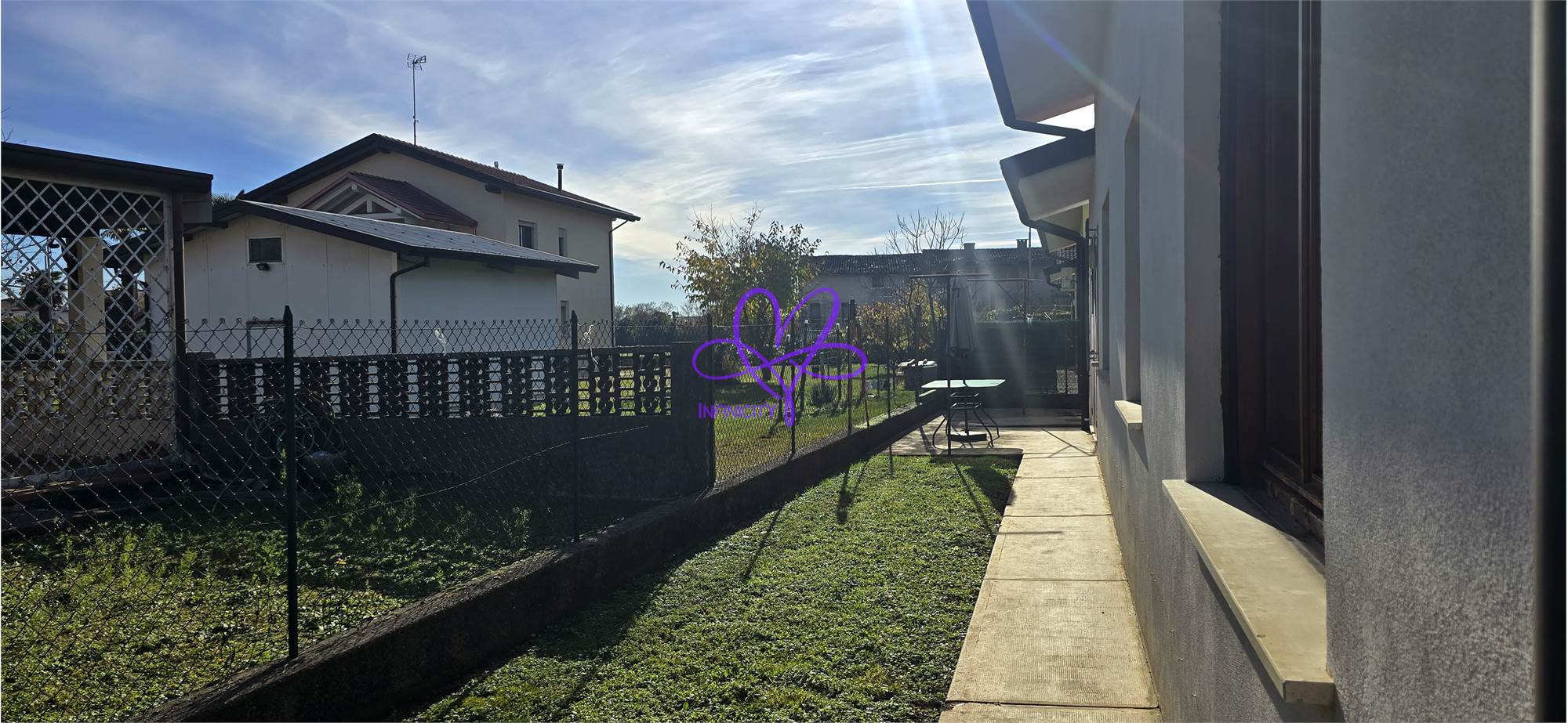 Il giardino che circonda la casa è completamente recintato e accessibile tramite due cancelli separati: uno pedonale e uno carraio, per un comodo ingresso con l’auto. La presenza di entrambi gli accessi aggiunge un ulteriore livello di praticità e indipendenza.